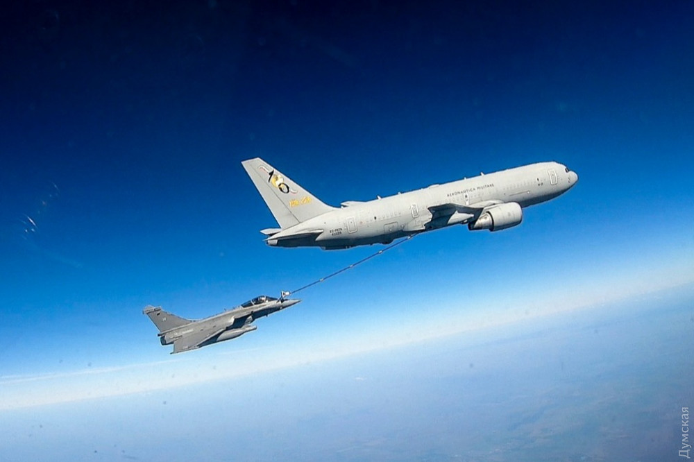 По дороге французские самолеты дозаправились в воздухе от итальянского самолета-заправщика KC-76.