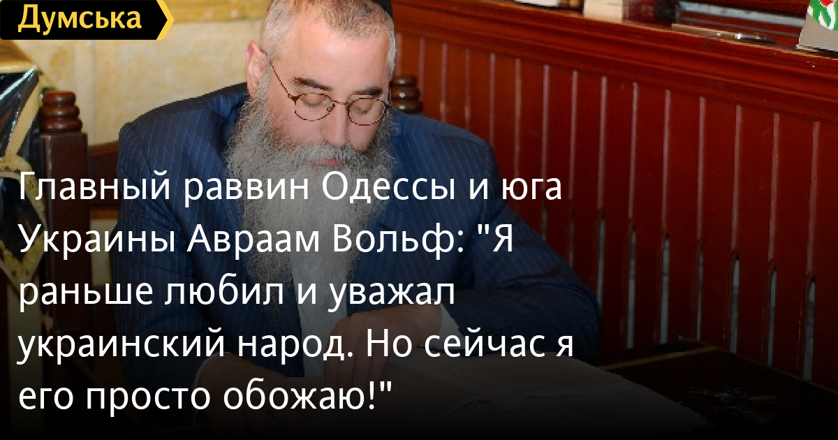 «Думская» не раз рассказывала об Аврааме Вольфе. 16 марта вместе с представителями других конфессий он обратился к одесситам и рассказал, что гордится тем, что работает в Одессе. «Это лучший город и лучшая страна», — сказал тогда он.