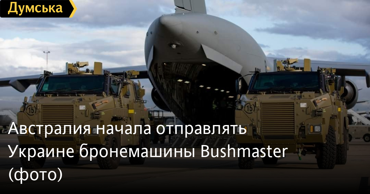 Первые четыре бронеавтомобиля Bushmaster погрузили в Австралии на борт самолета Boeing C-17 и отправили в Украину. В ближайшее время должна поступить вся партия из 20 машин.