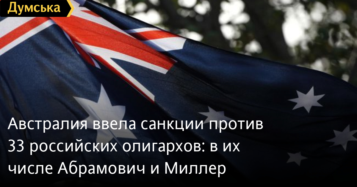 «Объявленные сегодня санкции укрепляют приверженность Австралии санкциям в отношении тех людей, которые накопили огромное личное богатство и имеют экономическое и стратегическое значение для России, в том числе в результате их связей с президентом РФ Владимиром Путиным», — сказано в заявлении главы МИД Австралии.