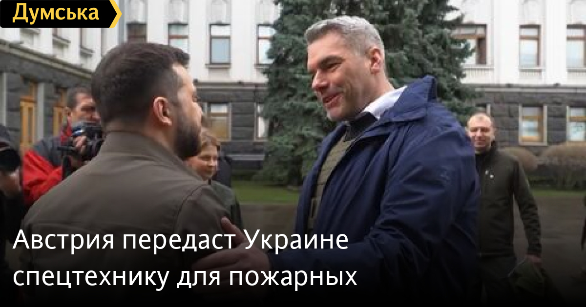 «Я хочу выразить благодарность Австрии и лично руководству государства не только за гуманитарную помощь, а также за ту технику, которая нам поможет и для работы сегодня после вторжения российской федерации, и для работы сотрудников наших ГСЧС и так далее. И пожарные машины. Действительно большая помощь», – отметил Зеленский.