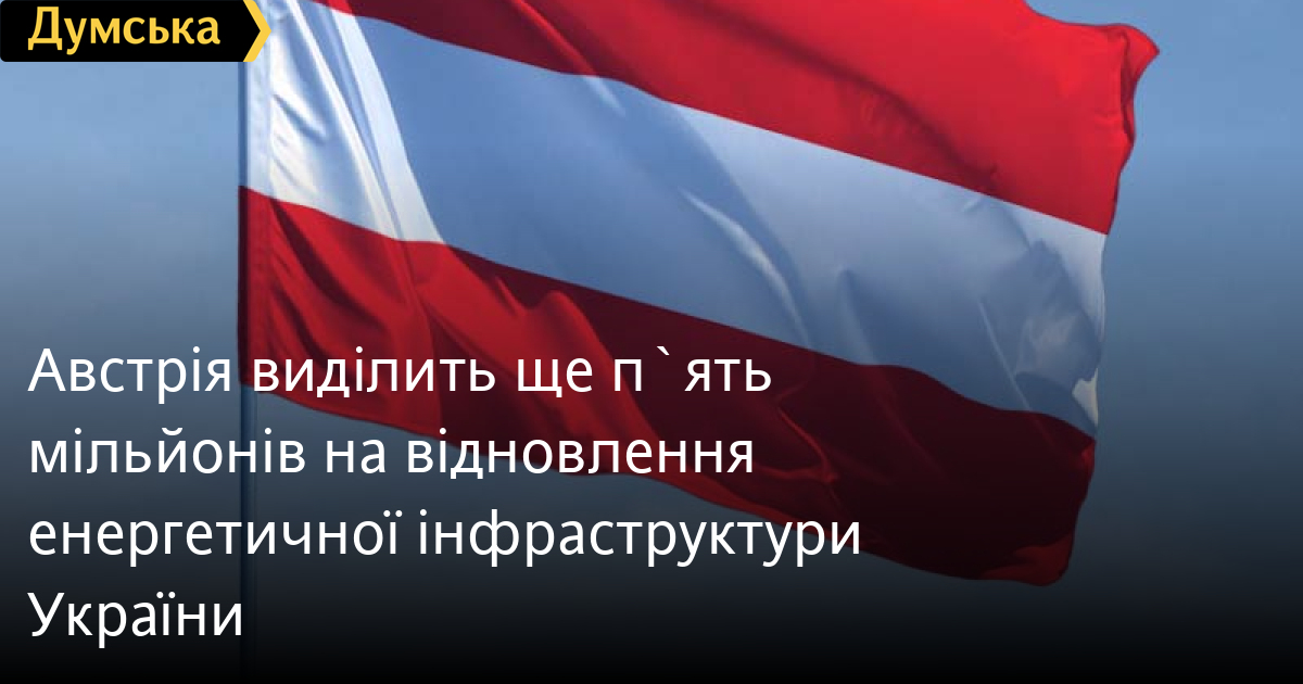 Ще п'ять мільйонів євро виділить Австрія на відновлення української енергетичної інфраструктури, пошкодженої внаслідок ракетних атак окупантів. Ця сума буде внесена до Фонду енергетичної підтримки України.