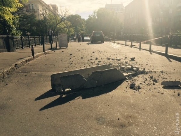 Сегодня утром водитель автомобиля «Хонда» снес блок, преграждающий проезд на аварийный мост Коцебу.
