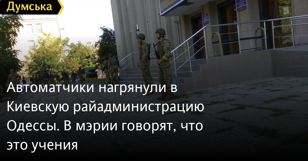 Автоматчики нагрянули в Киевскую райадминистрацию Одессы. В мэрии говорят, что это ученияГруппу людей в военной форме в полной амуниции заметили сегодня утром возле Киевской райадминистрации на Королева. Об этом «Думской» сообщили очевидцы: «Приехал автобус, и из него вышли около 35 человек в военной форме». В пресс-службе мэрии заверили, что это учения — их проводит военкомат Киевского района. Напомним, работники прокуратуры и полиции вчера разоблачили на взятке главного специалиста одного из отделов Киевской райадминистрации. СМЕРТЬ РОССИЙСКИМ ОККУПАНТАМ! Заметили ошибку? Выделяйте слова с ошибкой и нажимайте control-enter |