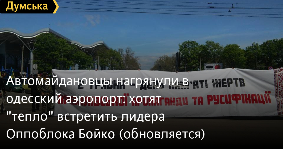 Сегодня в полдень активисты Автомайдана собрались возле здания одесского аэропорта в ожидании прилета лидера «Оппозиционного блока» Юрия Бойко, который запланировал свой визит в Одессу на годовщину 2 мая.