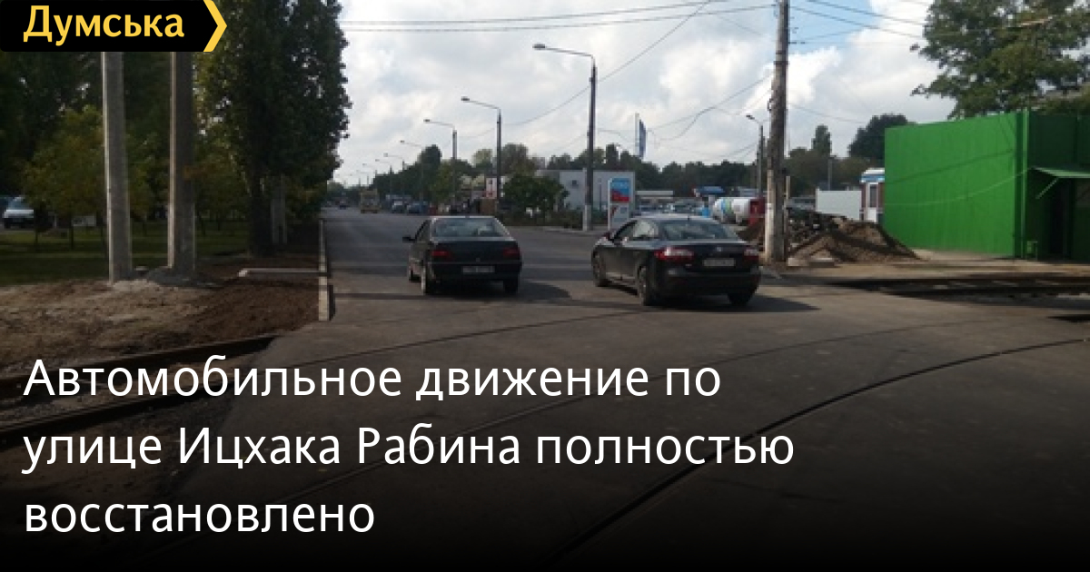 Сегодня, 12 сентября 2018 года, в полном объеме возобновлено автомобильное движение по улице Ицхака Рабина, которое было ограничено в связи с капремонтом переезда трамвайного полотна с проезжей частью на участке от улицы Генерала Петрова до Инглези/25-й Чапаевской дивизии.