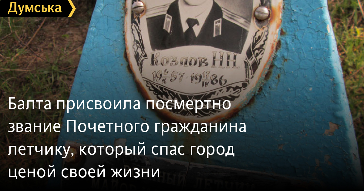 Балта присвоила посмертно звание Почетного гражданина летчику, который спас город ценой своей жизниБалтский горсовет посмертно присвоил звание Почетного гражданина советскому летчику, майору Николаю Козлову, который в 1986-м году ценой своей жизни предотвратил падение самолета на райцентр. Об этом «Думской» сообщили в мэрии Балты. Свидетельство и ленту торжественно вручили брату погибшего пилота Алексею Козлову, который принял участие в торжествах по случаю Дня города 5 октября. Кроме Козлова, почетными гражданми Балты стали зампред облсовета Николай Тиндюк и члену горисполкома, учителю и краеведу Петру Ткачу. «Думская» уже писала о подвиге Козлова. 17 апреля майор вместе с товарищем получили приказ перегнать с одного аэродрома на другой два старых МиГ-21, которые собирались списать. Прямо над Балтой у истребителя Николая отказал двигатель. Вместо того, чтобы катапультироваться, офицер решил отвести машину подальше от города. Он еще мог спастись, когда пролетал над окраинами райцентра, но там – нефтебаза и склады с 400 тоннами аммиака. В конце концов, летчик направил МиГ на плантацию черной смородины совхоза «Балтский». Потом это поле назовут его именем. У майора Николая Козлова остались жена и новорожденный сын. Вспомнили о летчике лишь весной сего года. В мае Балтская райгосадминистрация заявила, что намерена представить пилота к званию Героя Украины (посмертно). «Мы подадим документы в сектор по наградам облгосадминистрации, а та, рассмотрев их, примет решение, направлять или нет представление Президенту Украины», — отметил в интервью «Думской» глава РГА Василий Бабанский. Между тем, как стало известно, до областной администрации документы так и не дошли. А даже если бы дошли, то, по словам заведующей наградным сектором Галины Гуменюк, оснований для награждения Козлова нет : «Дело в том, что статут звания прямо запрещает присваивать его за заслуги, которые имели место в прошлом и не связаны со становлением и развитием независимой Украины», — отметила чиновник. СМЕРТЬ РОССИЙСКИМ ОККУПАНТАМ! Заметили ошибку? Выделяйте слова с ошибкой и нажимайте control-enter |