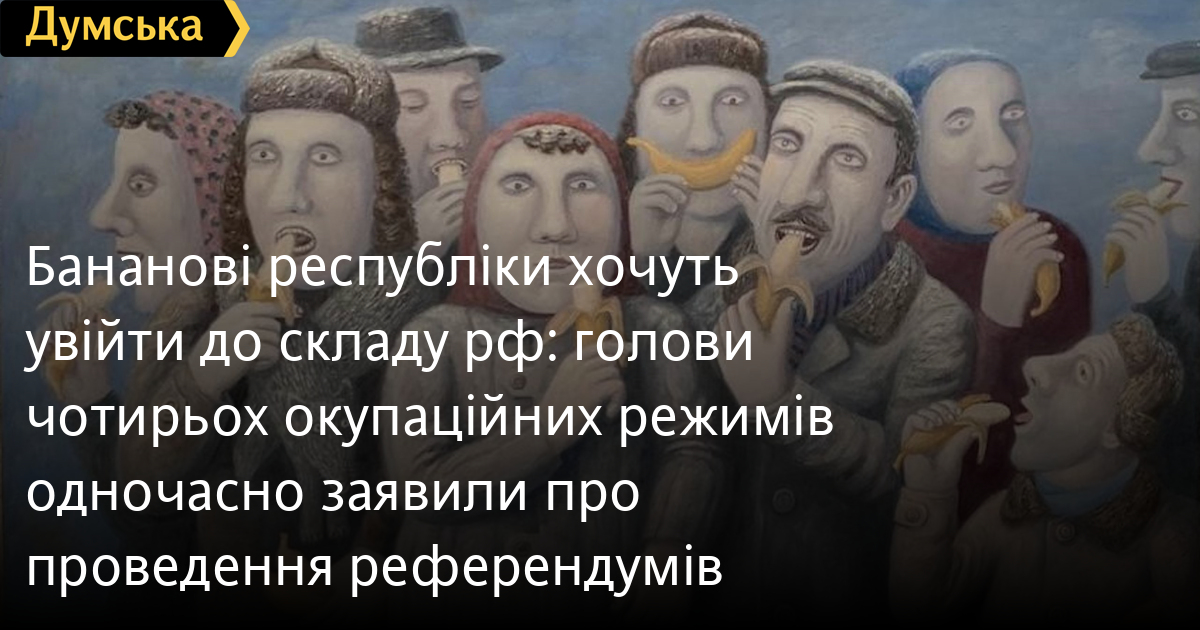 Окупаційна влада одночасно чотирьох квазіутворень на окупованій частині Донецької, Луганської, Херсонської та Запорізької областей заявила про проведення референдуму про входження до складу росії.