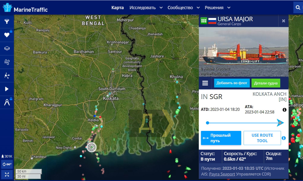 Суховантажу URSA MAJOR під прапором рф (IMO 9538892) відмовлено у вході в порт Колката, оскільки балкер перебуває під санкціями США.