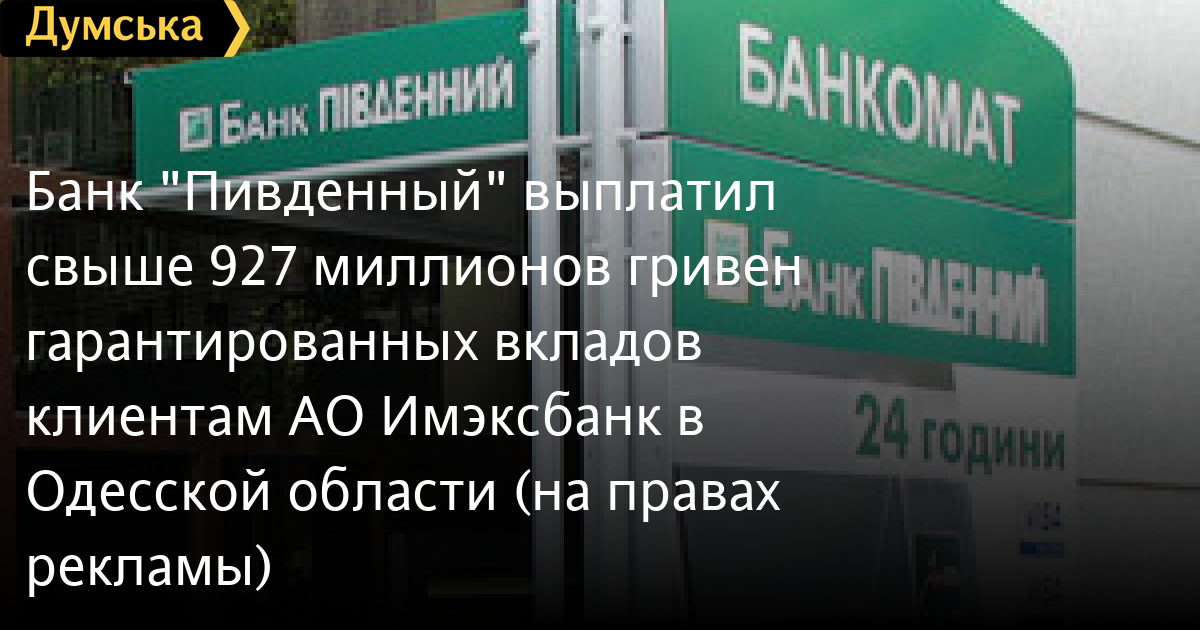 Банк «Пивденный» выплатил свыше 927 миллионов гривен гарантированных вкладов клиентам АО «Имэксбанк» в Одесской области (на правах рекламы)В течение трех недель (с 28 апреля по 19 мая) банк «Пивденный» произвел около 63 тысяч выплат вкладчикам АО «Имэксбанк», проживающим в Одесской области, и за это время выплатил им свыше 927 миллионов гривен гарантированных сумм вкладов. «Мы постарались максимально оптимизировать этот процесс с учетом большого наплыва вкладчиков. Чтобы создать комфортные условия для получения данных средств, избежать очередей, были задействованы практически все ресурсы банка – в усиленном режиме и с расширенным графиком работали 40 отделений и 223 менеджера, в том числе и сотрудники контакт-центра, благодаря которым мы за достаточно короткий срок смогли обработать такое количество заявок. Этим наша сеть подтвердила свое умение работать в нестандартных ситуациях и уверенно справляться с большим потоком клиентов», — рассказал директор Департамента региональной сети Владимир Гавлицкий. «Доверие к банковской системе, к сожалению, сильно упало в последнее время, но мы постарались сделать все для вкладчиков неплатежеспособного банка, чтобы они не чувствовали себя обманутыми. Специально для них специалисты банка разработали ряд продуктовых предложений, которыми клиенты с удовольствием воспользовались. Порядка 25% вкладчиков стали нашими клиентами, и мы их не подведем», — подчеркнул заместитель председателя правления банка «Пивденный» Максим Цымбал. Сегодня сеть банка состоит из 139 отделений по всей Украине, в которых работают более 2350 человек. Для своих клиентов банк предлагает большой перечень финансовых услуг: платежные карты, депозиты, денежные переводы, аренда индивидуальных сейфов и другие. Телефон контакт-центра банка: 0-800-30-70-30 (бесплатно со стационарных и мобильных телефонов в пределах Украины). Сайт: www.bank.com.ua. СМЕРТЬ РОССИЙСКИМ ОККУПАНТАМ! Заметили ошибку? Выделяйте слова с ошибкой и нажимайте control-enter |
