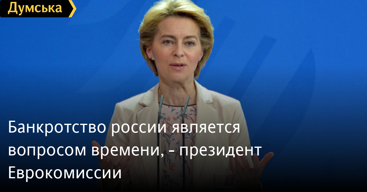 Президент Еврокомиссии Урсула фон дер Ляйен считает банкротство россии только вопросом времени, а также призывает предоставить Украине как можно скорее оружие, чтобы она могла завершить эту войну.