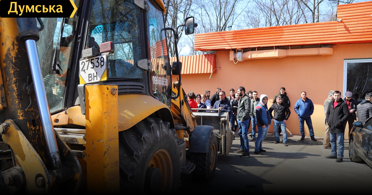 Как передает корреспондент «Думской», конфликт вспыхнул сегодня утром, когда к бару прибыл экскаватор, сотрудники прокуратуры и судебные исполнители. По их словам, решение о демонтаже заведения принял Киевский районный суд Одессы по иску прокуратуры, поданному еще в 2015 году в интересах территориальной громады.