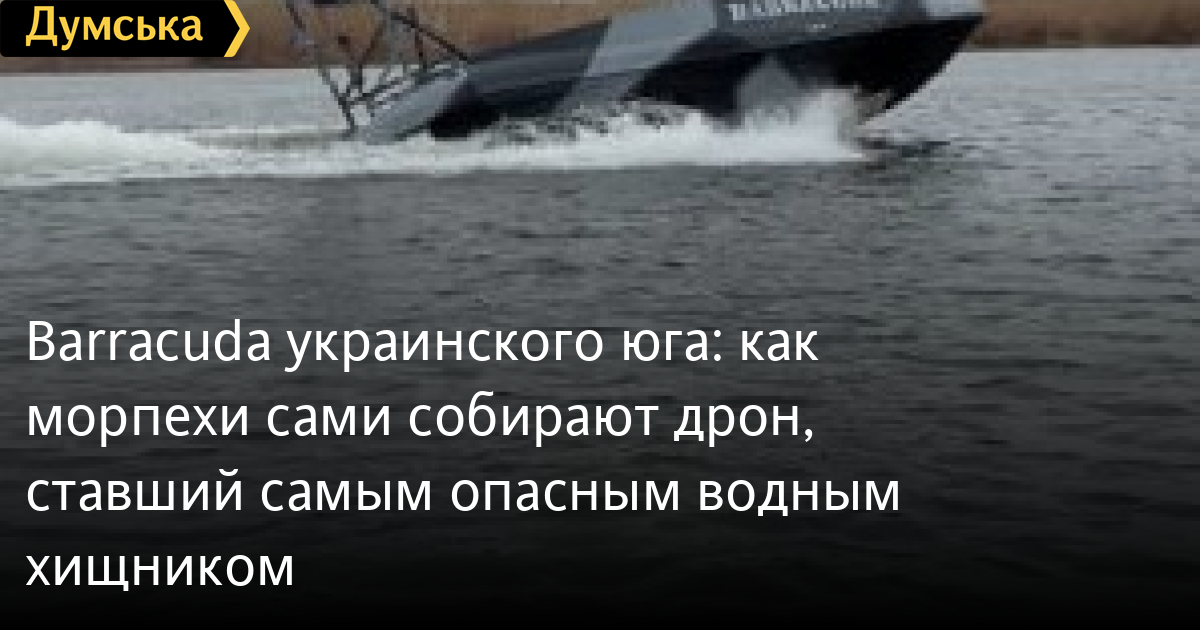 Barracuda украинского юга: как морпехи сами собирают дрон, ставший самым опасным водным хищникомБерег реки где-то на юге Украины. Мы не уточняем географических названий и имен наших героев — только позывные и их истории. Русские давно ведут охоту на этих парней, ведь они не просто операторы. Это создатели, которые сами собирают, модернизируют и отправляют в бой дроны-камикадзе, меняющие правила войны, причем не только на воде. Barracuda — это имя и беспилотника, и самого подразделения 40й отдельной бригады морсокй пехоты. Эти военные — не просто побратимы. Они знакомы по 15 лет и все добровольцы и понимают друг друга с полуслова. Возможно, в этоим и заключается секрет их потрясающих результатов. ФИЛОСОФИЯ «СТАЛЬ ВМЕСТО ПЛОТИ» Командир подразделения с позывным Коп — бывший спецназовец. В 2022-м штурмовал позиции «ногами», но после тяжелых потерь среди побратимов пришел к выводу: война должна стать технологичной. «Мы выбрали путь замещения: вместо человека должен ехать металл, который стоит денег, но не жизни. В этом суть проекта — создавать системы, заходящие туда, откуда пехотинец физически не вернется. Мы максимально вкладываемся в эти технологии, потому что это единственный способ эффективно уничтожать врага, сохраняя при этом наших лучших людей», — объясняет командир. Коп Сегодня его Barracuda — это не просто безэкипажные катера со взрывчаткой (брандеры), а многофункциональные платформы. Водный дрон может нести на себе гранатометы, мины и даже быть «маткой» для воздушных БПЛА. «Сейчас мы ставим на борт FPV-дроны. Это новая генерация. Катер подходит на 200 километров, и оттуда взлетает «птичка». Это позволяет атаковать позиции оккупантов в Железном Порту или Скадовске, где они привыкли чувствовать себя в безопасности», — говорит Коп. О семье командир принципиально не рассказывает и такая скрытность понятна. Враг не шутит, по локациям, где бавает Barracuda прилетает конкретно. Недавно после интервью немецким журналистам ракетный удар по той самой локации случился уже через два дня. Поэтому подразделение никогда не задерживается на одном месте. Аказа ОТ АВТОМЕХАНИКА И ПРЕДПРИНИМАТЕЛЯ ДО ОХОТНИКОВ ЗА КОРАБЛЯМИ За пультом управления сидит Аказа (позывной в честь героя аниме). До большой войны он был автомехаником в Николаеве. Когда фронт подошел к его дому на расстояние пяти километров, начал чинить военную технику, а позже и сам надел пиксель, став частью 40-й бригады 30-го корпуса морской пехоты. «Сначала был механиком, потом электриком. Пока настраивали машины, попробовал себя пилотом — и затянуло. Самое сложное в нашей работе — вывести дрон на рубеж, мимо своих. Дальше уже оператору помогает робот», — рассказывает Аказа. По его словам, управлять морским дроном технически проще, чем воздушным — не нужно постоянно бороться за стабилизацию в небе. Но есть свои нюансы: надо буквально кожей чувствовать ветер и волну. Для этого Аказа сначала сам выходил в море на обычных лодках, чтобы понимать физику процесса. Результаты подготовки впечатляют. Недавно его группа подошла вплотную к российскому катеру. «Они нас в упор не видели. А потом — бум! У нас есть видео подтверждение, они сами его прислали», — улыбается пилот. Его коллега, оператор с позывным Ромаха, в прошлом — частный предприниматель. Сегодня он водит «барракуды» в дальние рейды. Такие операции м