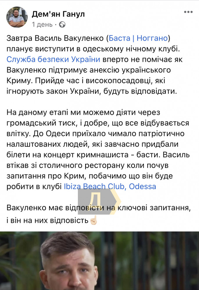 Незадолго до выступления одесский активист Демьян Ганул написал на своей страничке в «Фейсбуке», что в Одессу приехало «большое количество патриотически настроенных людей, которые заблаговременно купили билеты на концерт». Демьян пригрозил, что Вакуленко придется ответить на некие ключевые вопросы, однако, судя по всему, этого не случилось.