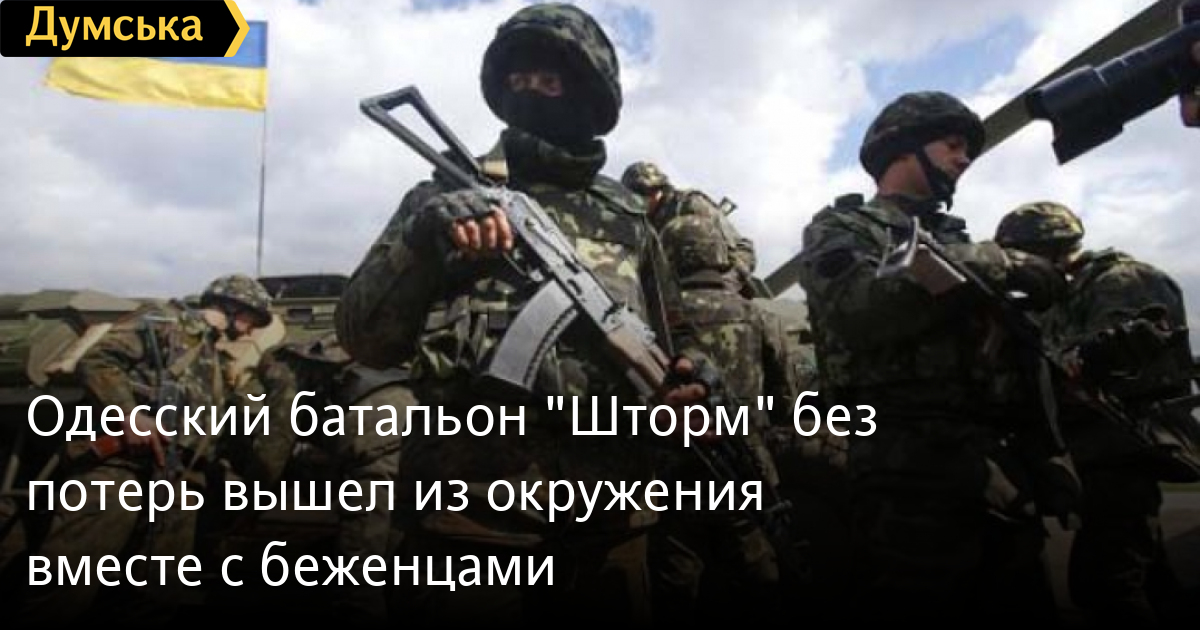 Последние четыре дня бойцы «Шторма» вместе с подразделениями 24-й бригады находились под мощным артиллерийским обстрелом, который практически непрерывно велся со стороны Луганска. Выходя из окружения, одесситы без потерь вывели колонну из 62 единиц техники, включая трофейный БМД и более 50 автомобилей и автобусов с жителями села Георгиевка и города Лутугино, которым террористы угрожали расправой.