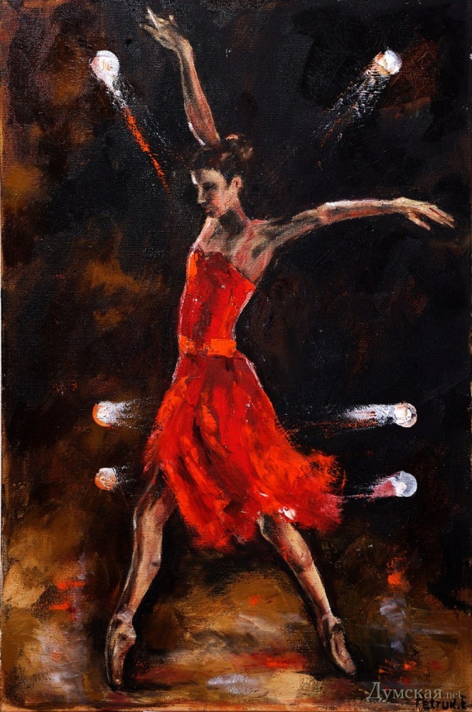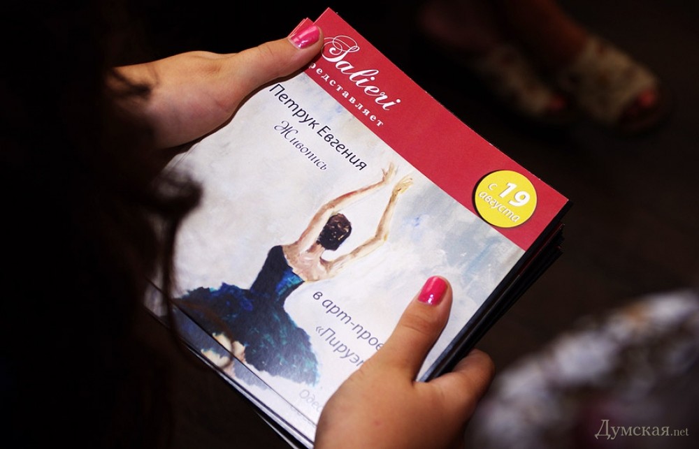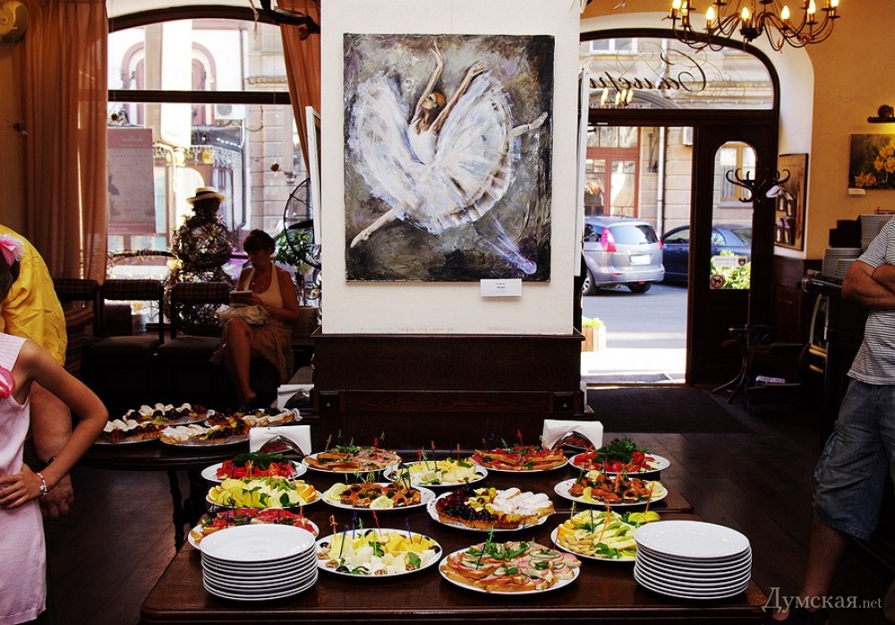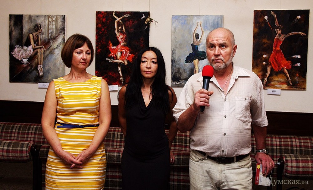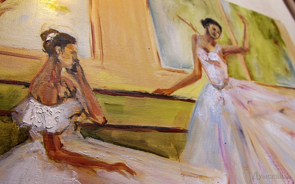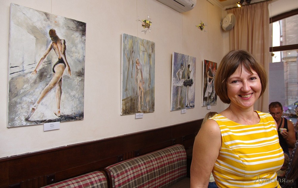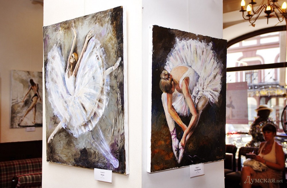 Батман, фуэте, «Пируэт»: одесская арт-кофейня представляет живопись Евгении ПетрукВыставка, получившая название «Пируэт», целый месяц работает в арт-кофейне «Сальери» (Ланжероновская, 14). «Думская» побывала на вернисаже и познакомилась с автором работ, Евгенией Петрук. - Я из семьи военного, родилась в Потсдаме, — рассказывает Евгения. – В трехлетнем возрасте меня увезли в Азербайджан, какое-то время мы жили в Нагорном Карабахе, потом переехали в Тбилиси… и вот там задержались на долгие годы. В Грузии я окончила педагогический институт, вышла замуж, родила сына и дочь, преподавала в начальных классах. Несколько лет назад наша семья переехала в Одессу (это ведь родина моей мамы!), я работала учителем русского языка, затем стала торговым представителем фармацевтической компании. Но у меня такое ощущение, будто жизнь моя по-настоящему началась с того момента, как я стала заниматься живописью! Жизнь стала другой, исполнилось то, о чем я с детства мечтала, да не сложилось: я пишу картины… Дети поддержали меня. Они работают в Киеве, в Одессе бывают по выходным и праздникам, вот приедут и отметим это событие прямо здесь чем-нибудь вкусненьким. За три года занятий живописью в студии Алины Гордиенко Евгения Петрук достигла того, чем не все дипломированные художники могут похвастаться, ведь ей дано писать человеческие фигуры и лица не карикатурно, не условно. Конечно, ей не позируют сильфиды балетных классов, Евгения не занимается копированием либо раскрашиванием чужих снимков, но отталкивается фантазией от фотосессий с участием балерин, но добавляет в мизансцену свое настроение, душу, мелодию (как ни странно, предпочитает писать под хороший рок, но в картинах этого вовсе «не слышно»). Размытый городской фон в картине «Девушка с зонтом» — это и старая Одесса, и старый Тбилиси сквозь жемчужную пелену дождя, а красавица в алом платье идет походкой танцовщицы, видимо, в театр направляется… Наконец-то что-то ласкающее глаз, обычно современные выставки дают пищу скорее уму. По словам художницы, Алина Гордиенко оказалась очень чутким и терпеливым педагогом, ничего не навязывающим, зато умеющим вовремя подсказать какие-то технические моменты. Предложение Алины освоить тему балета восприняла поначалу с испугом, ведь не пробовала писать людей, делала исключительно пейзажи и натюрморты. Но попробовала – и увлеклась! - Полярность холодных и теплых тонов присуща ее картинам, которые предельно экспрессивны и насыщенны цветом, — произнес на церемонии открытия выставки старший научный сотрудник музея западного и восточного искусства Сергей Ильин. — Наряду с классическим балетом здесь представлены и другие танцы: фламенко, танго. А философия этих танцев: огонь и лед, Инь и Ян, вечное противоречие! Вот более ранние работы Евгении: кувшинки, лодки, букеты роз – тут ощутимо влияние великих, но еще Сальвадор Дали, ниспровергатель и революционер, заметил, что не может быть по определению начинающего художника, который бы кому-то не подражал. Когда мы начинаем чему-либо учиться, это так естественно! Сегодня Евгения увидела впервые свои работы со стороны, это важный этап для художника. Это, как я понимаю, было решением взрослой, зрелой женщины, зовом души. Однако советую на будущее с белилами обращаться аккуратнее; увлечение белилами прошел в начале пути к