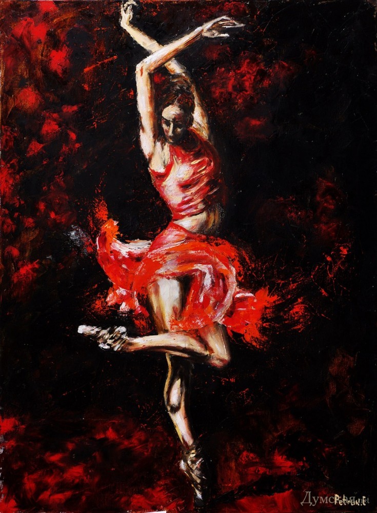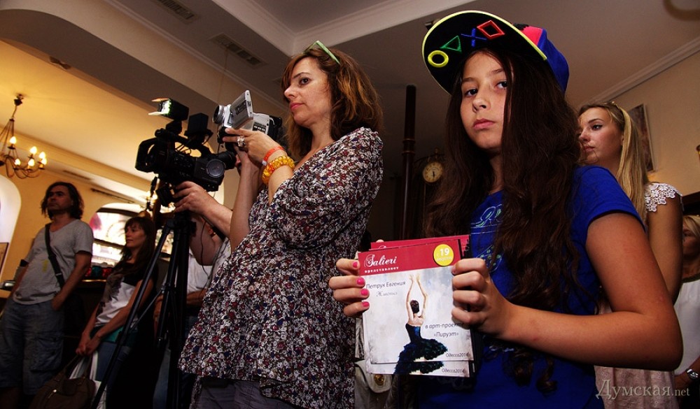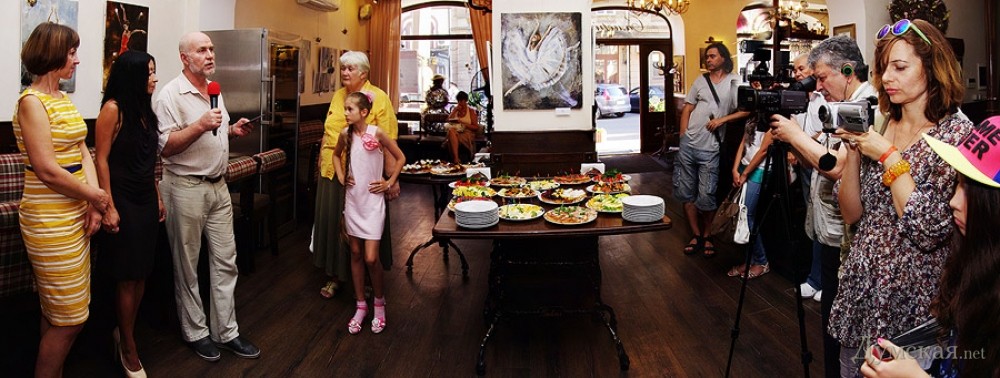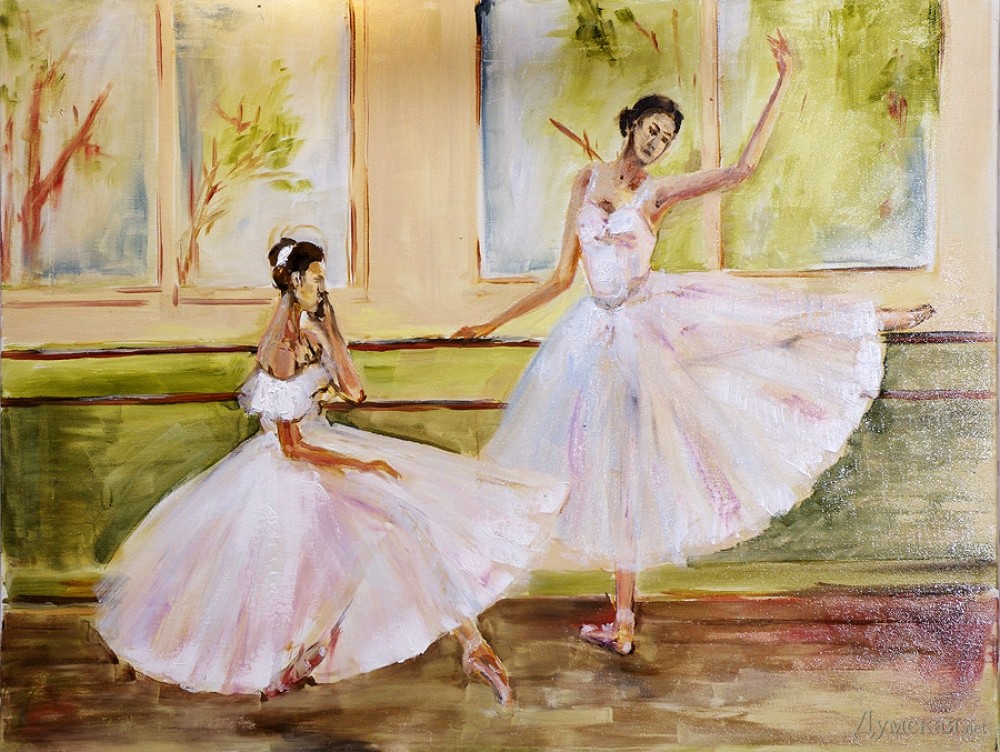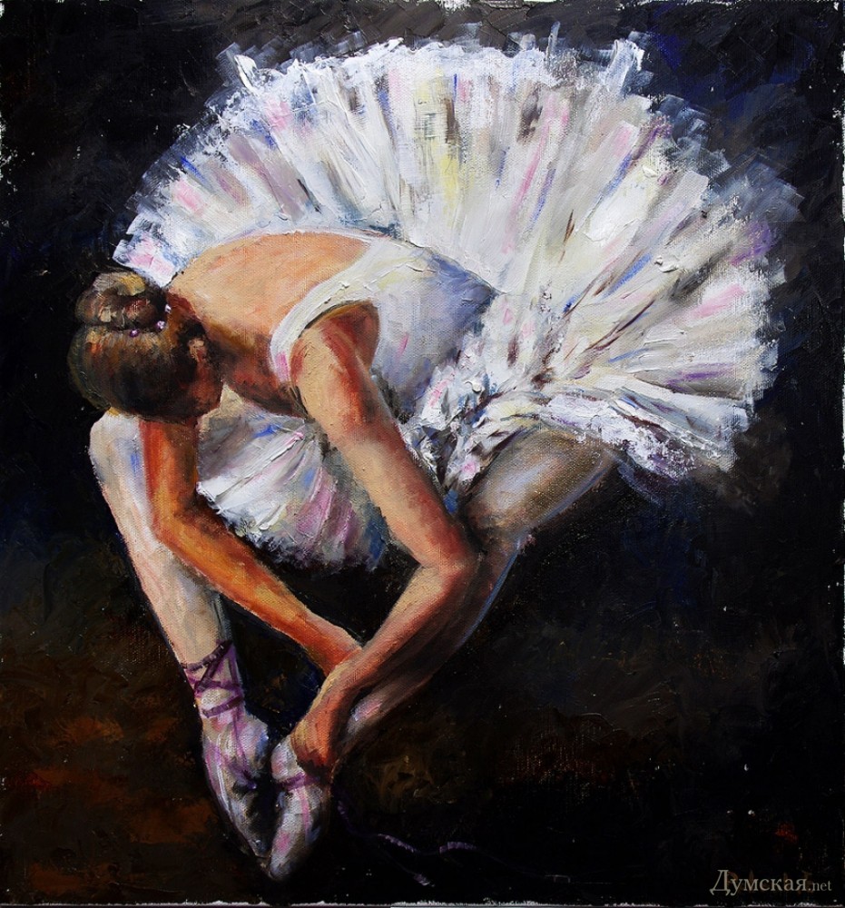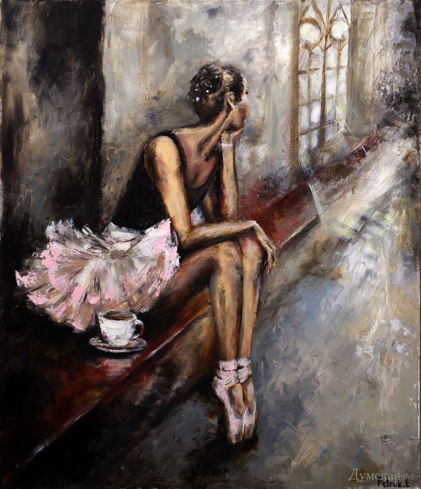 Батман, фуэте, «Пируэт»: одесская арт-кофейня представляет живопись Евгении ПетрукВыставка, получившая название «Пируэт», целый месяц работает в арт-кофейне «Сальери» (Ланжероновская, 14). «Думская» побывала на вернисаже и познакомилась с автором работ, Евгенией Петрук. - Я из семьи военного, родилась в Потсдаме, — рассказывает Евгения. – В трехлетнем возрасте меня увезли в Азербайджан, какое-то время мы жили в Нагорном Карабахе, потом переехали в Тбилиси… и вот там задержались на долгие годы. В Грузии я окончила педагогический институт, вышла замуж, родила сына и дочь, преподавала в начальных классах. Несколько лет назад наша семья переехала в Одессу (это ведь родина моей мамы!), я работала учителем русского языка, затем стала торговым представителем фармацевтической компании. Но у меня такое ощущение, будто жизнь моя по-настоящему началась с того момента, как я стала заниматься живописью! Жизнь стала другой, исполнилось то, о чем я с детства мечтала, да не сложилось: я пишу картины… Дети поддержали меня. Они работают в Киеве, в Одессе бывают по выходным и праздникам, вот приедут и отметим это событие прямо здесь чем-нибудь вкусненьким. За три года занятий живописью в студии Алины Гордиенко Евгения Петрук достигла того, чем не все дипломированные художники могут похвастаться, ведь ей дано писать человеческие фигуры и лица не карикатурно, не условно. Конечно, ей не позируют сильфиды балетных классов, Евгения не занимается копированием либо раскрашиванием чужих снимков, но отталкивается фантазией от фотосессий с участием балерин, но добавляет в мизансцену свое настроение, душу, мелодию (как ни странно, предпочитает писать под хороший рок, но в картинах этого вовсе «не слышно»). Размытый городской фон в картине «Девушка с зонтом» — это и старая Одесса, и старый Тбилиси сквозь жемчужную пелену дождя, а красавица в алом платье идет походкой танцовщицы, видимо, в театр направляется… Наконец-то что-то ласкающее глаз, обычно современные выставки дают пищу скорее уму. По словам художницы, Алина Гордиенко оказалась очень чутким и терпеливым педагогом, ничего не навязывающим, зато умеющим вовремя подсказать какие-то технические моменты. Предложение Алины освоить тему балета восприняла поначалу с испугом, ведь не пробовала писать людей, делала исключительно пейзажи и натюрморты. Но попробовала – и увлеклась! - Полярность холодных и теплых тонов присуща ее картинам, которые предельно экспрессивны и насыщенны цветом, — произнес на церемонии открытия выставки старший научный сотрудник музея западного и восточного искусства Сергей Ильин. — Наряду с классическим балетом здесь представлены и другие танцы: фламенко, танго. А философия этих танцев: огонь и лед, Инь и Ян, вечное противоречие! Вот более ранние работы Евгении: кувшинки, лодки, букеты роз – тут ощутимо влияние великих, но еще Сальвадор Дали, ниспровергатель и революционер, заметил, что не может быть по определению начинающего художника, который бы кому-то не подражал. Когда мы начинаем чему-либо учиться, это так естественно! Сегодня Евгения увидела впервые свои работы со стороны, это важный этап для художника. Это, как я понимаю, было решением взрослой, зрелой женщины, зовом души. Однако советую на будущее с белилами обращаться аккуратнее; увлечение белилами прошел в начале пути к