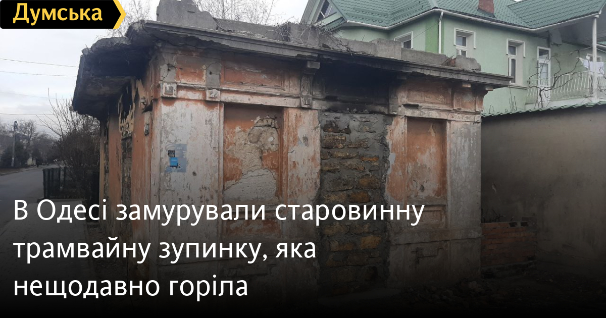 Трамвайну зупинку на вулиці Авдєєва-Чорноморського в Одесі, яку збудували бельгійці і яка нещодавно пережила пожежу, тепер замурували.