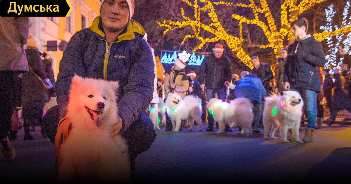 Белые и смешные: в Одессе прошел новогодний парад самоедских собак