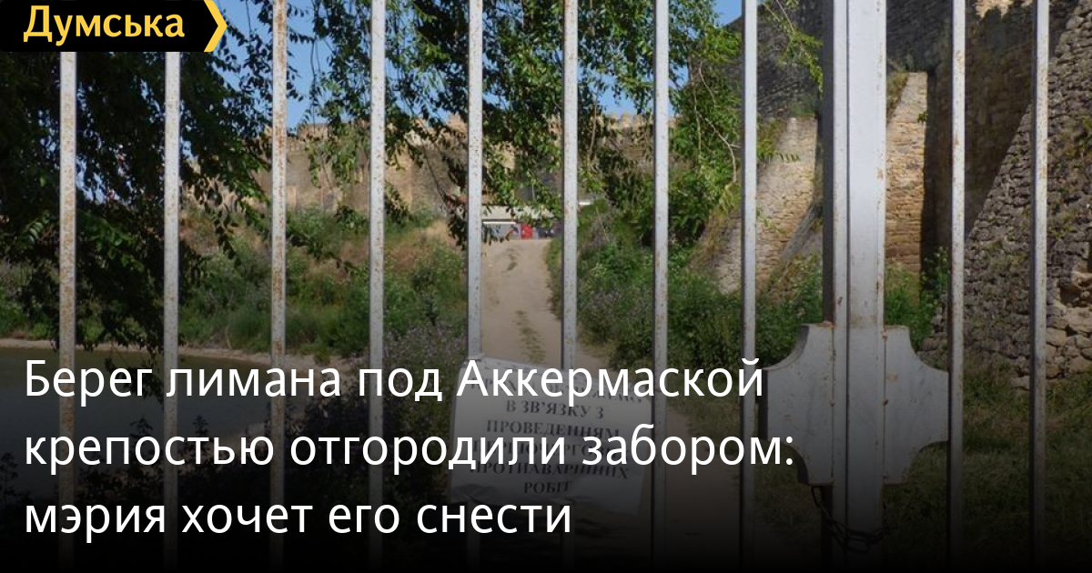 Берег лимана под Аккермаской крепостью отгородили забором: мэрия хочет его снестиБелгород-Днестровский горсовет планирует демонтировать металлический забор, установленный областным КП «Фортеця» на побережье Днестровского лимана. Соответствующий проект решения исполкома опубликован на официальном сайте города. На ограждении есть объявление о том, что проход по берегу закрыт в связи с проведением противоаварийных работ. Однако, по данным мэрии, забор установлен самовольно. «Учитывая невыполнение КП «Фортеця» предписания от 24.05.2019 №22 о срочном демонтаже самовольно установленной металлической ограды и ворот на побережье Днестровского лимана по адресу ул. Ушакова, возле дома №36 поручить ГЦ «Благоустройство» произвести демонтаж», — говорится в проекте решения. Жители города рассказывают, что несколько лет назад на этом месте был натянут металлический трос, который препятствовал въезду машин, но люди могли свободно прогуливаться по берегу. СМЕРТЬ РОССИЙСКИМ ОККУПАНТАМ! Заметили ошибку? Выделяйте слова с ошибкой и нажимайте control-enter |
