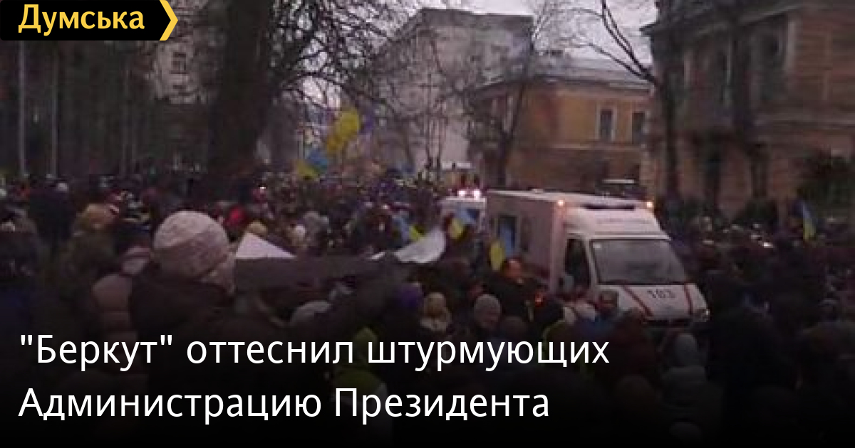 Сотрудники правоохранительных органов, которые охраняют здание Администрации Президента, оттеснили штурмовавших их кордон людей к улице Институтской, сообщает «Громадське ТВ».