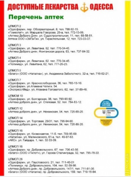 Во вторник, 11 апреля как раз пыталась получить по рецепту. Врач выписала рецепт 31.03, 6 апреля нач.мед еще не подписала и не поставила печать, только 11 апреля забрала в 10.00 рецепты в регистратуре. Поликлиника находится на Сегедской, в аптеку послали за лекарством на Тираспольскую 12, добраться туда пришлось почти за два часа троллейбусом, трамваем и это человеку, которому за 60 лет, инвалиду. Приехав туда, услышала в ответ, что рецепты не действительны, т.к. выданы 31.03, а сейчас 11 апреля. Обратно в поликлинику на Сегедской, оттуда отправили на Маршала Говорова, а там сказали, что денег на лекарства уже нет, будут только в мае. Вот вам и получите бесплатно лекарства. Точно как в поговорке по поводу бесплатного сыра. Народ!!! Радуйся и бегай, если можешь, за бесплатными лекарствами, если при этом не протянешь ноги.