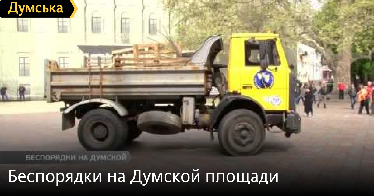 26 апреля в 4-ре утра неизвестные снесли палаточный городок возле одесской мэрии. Спустя пару часов активисты забаррикадировали входы в здание горсовета шинами и мусорными контейнерами — в знак протеста против ночного погрома. Чтобы разблокировать мэрию, понадобилось вмешательство правоохранителей СМЕРТЬ РОССИЙСКИМ ОККУПАНТАМ! Заметили ошибку? Выделяйте слова с ошибкой и нажимайте control-enter Думская ТВ. Сюжеты: