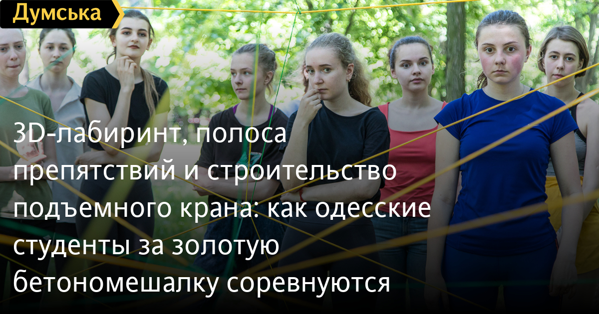 Мы находимся на спортивно-развивающей игре «Бетономешалка» на территории научно-практического центра Одесской государственной академии строительства и архитектуры, что на Даче Ковалевского. Участники игры, студенты ОГАСа пытаются пройти одно из заданий — 3D-сетку. На все про все у них есть десять минут.