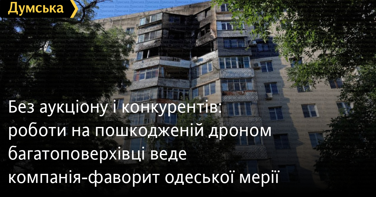 Без аукціону і конкурентів: роботи на пошкодженій дроном багатоповерхівці веде компанія-фаворит одеської меріїПідрядника для ремонту будинку на вулиці Середній, який постраждав від російських обстрілів, одеська мерія обрала без конкурсу. Роботи обійдуться міському бюджету в майже 12 мільйонів гривень, передає наш кореспондент. У багатоповерхівці розберуть тільки пошкоджені елементи, законсервують дах і вікна. Також фахівці укріплять фасад будівлі. Усе це мають завершити до кінця цього року. Тендер з уже укладеним договором між департаментом благоустрою та компанією «ХАЙ-ТЕК ЕЛІТ-БУД» опубліковано в системі Prozorro. Будівля потребує термінових протиаварійних робіт, у таких випадках закон дає змогу обирати підрядника без конкурсу — ідеться в документах. За даними YouControl «ХАЙ-ТЕК ЕЛІТ-БУД» зареєстрована у вересні 2018 року. Її засновник — Микола Рожков, а керівник — Олег Григорович. Ця ж фірма раніше виграла тендер на 3,5 млн грн за демонтаж частини будинку на Добровольського, 134, будучи єдиним учасником. Компанія також займається ремонтом багатоповерхівки на Ярослава Мудрого, 2 (раніше Глушка). Договір із нею так само підписали без конкурсу. «ХАЙ-ТЕК ЕЛІТ-БУД» також освоїла значні суми на ліквідації інших руйнувань: близько 2 млн грн на Пишенина, 35, і майже 1,5 млн на Фонтанській дорозі. Загалом департамент із благоустрою вже уклав із цією компанією 15 договорів на понад 46 млн грн. Зазначимо, що раніше на виконкомі ухвалили рішення, відновлювати напівзруйновані будинки за рахунок бюджетних і залучених коштів. Що стосується ремонтом квартир, то мешканці можуть скористатися державною програмою єВідновлення. СМЕРТЬ РОСІЙСЬКИМ ОКУПАНТАМ! Помітили помилку? Виділяйте слова з помилкою та натискайте control-enter |