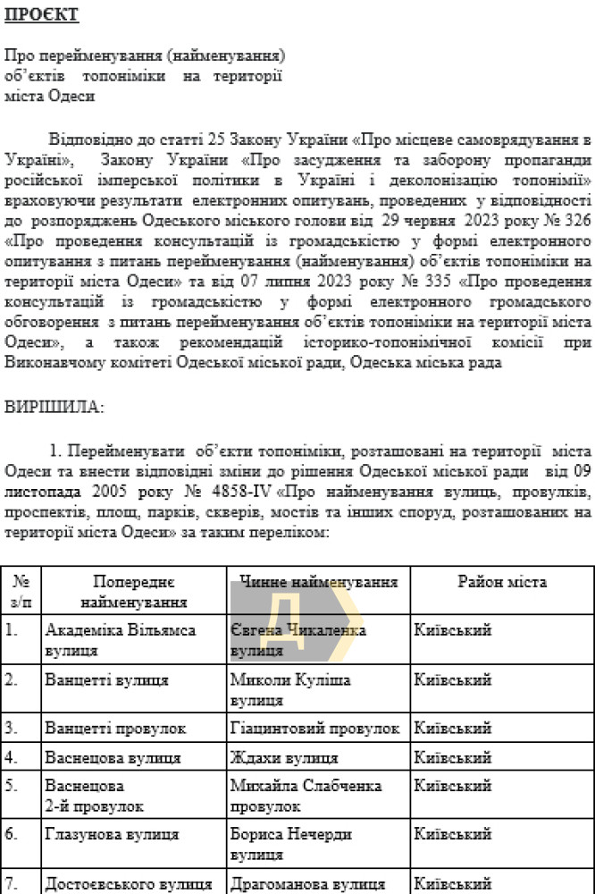 Шістдесят одна одеська вулиця або провулок отримають нові назви, якщо депутати міської ради підтримають проект рішення на найближчій сесії.