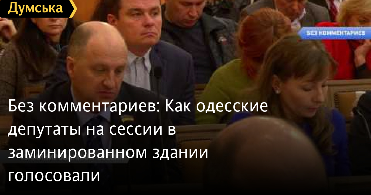 Без комментариев: Как одесские депутаты на сессии в «заминированном» здании голосовалиСМЕРТЬ РОССИЙСКИМ ОККУПАНТАМ! Заметили ошибку? Выделяйте слова с ошибкой и нажимайте control-enter Думская ТВ. Сюжеты: