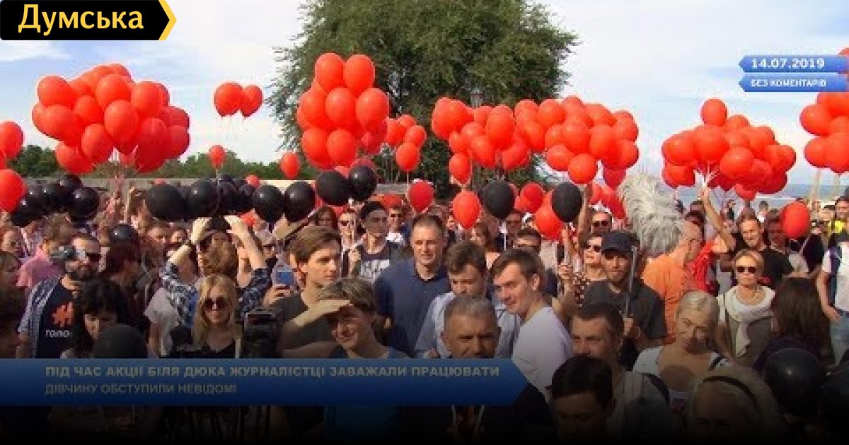 Во время акции возле Дюка, которую пытались сорвать поклонники Шария, неизвестные обступили журналистку и препятствовали ее работе. На попытки девушке уйти ее не отпускали и требовали удалить сделанные нею фото