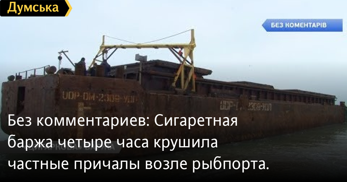 Без комментариев: «Сигаретная» баржа четыре часа крушила частные причалы возле рыбпорта.СМЕРТЬ РОССИЙСКИМ ОККУПАНТАМ! Заметили ошибку? Выделяйте слова с ошибкой и нажимайте control-enter Думская ТВ. Сюжеты: