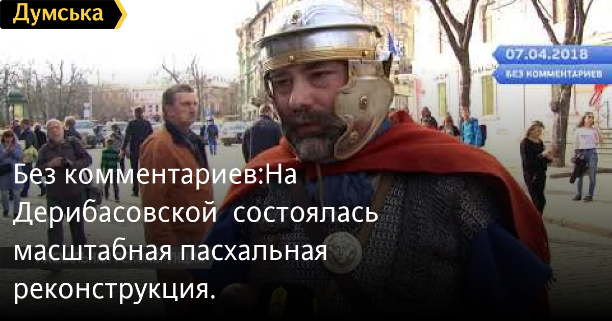 Без комментариев:На Дерибасовской состоялась масштабная пасхальная реконструкция.СМЕРТЬ РОССИЙСКИМ ОККУПАНТАМ! Заметили ошибку? Выделяйте слова с ошибкой и нажимайте control-enter Думская ТВ. Сюжеты: