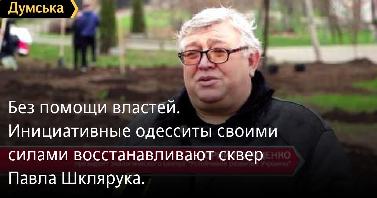 Без помощи властей. Инициативные одесситы своими силами восстанавливают сквер Павла Шклярука.Не полагаясь на городскую власть. Вооружившись хозяйственным инвентарем инициативные одесситы собственноручно приступили к восстановлению сквера Павла Шклярука. На таком субботнике побывала и Юлия Долганюк. СМЕРТЬ РОССИЙСКИМ ОККУПАНТАМ! Заметили ошибку? Выделяйте слова с ошибкой и нажимайте control-enter Думская ТВ. Сюжеты: