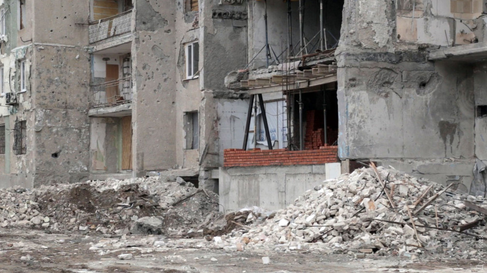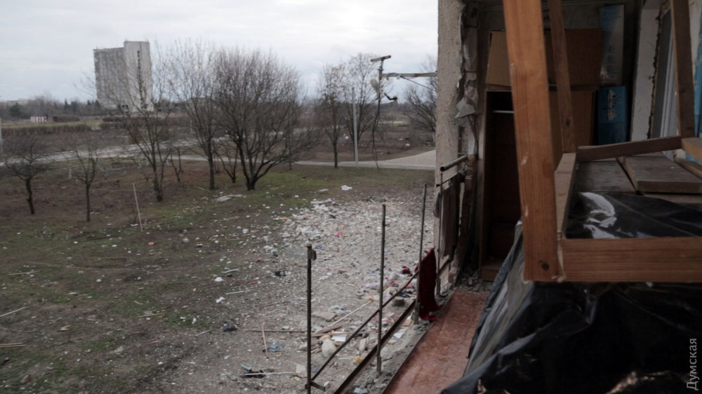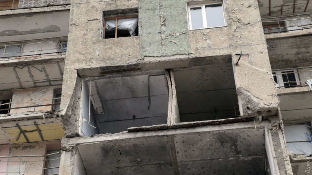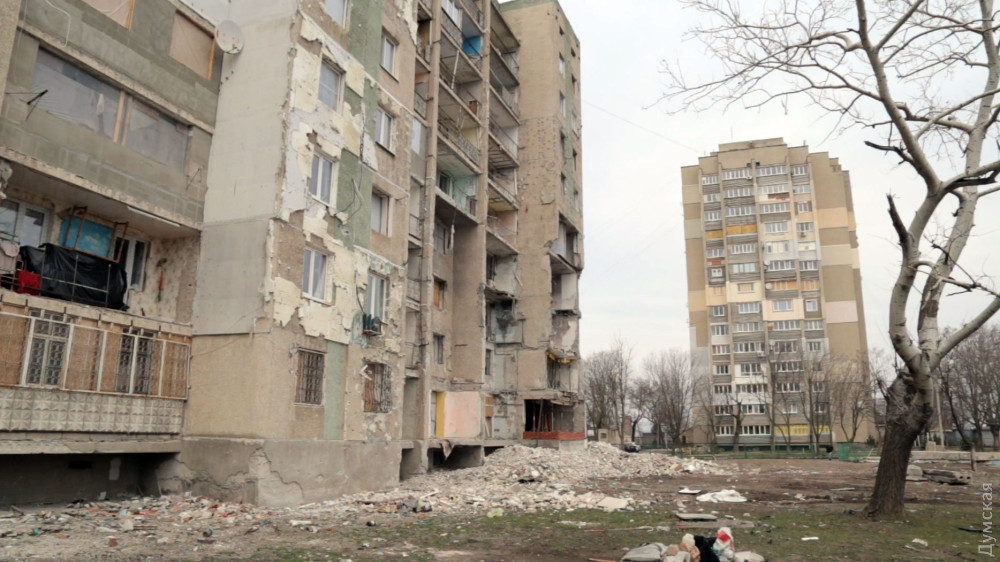Минуло сім місяців, а дев'ятиповерховий житловий будинок все ще відновлюють: зміцнили фундамент, деформовані жахливим вибухом перекриття перших чотирьох поверхів, які прийняли на себе основний удар, підтримують будівельні підпірки. З фасаду звисає зірваний вибуховою хвилею утеплювач. Частина вікон забита дошками, частина затягнута плівкою з логотипом управління у справах біженців при ООН, в решті — нові склопакети, встановлені одним з одеських благодійних фондів.