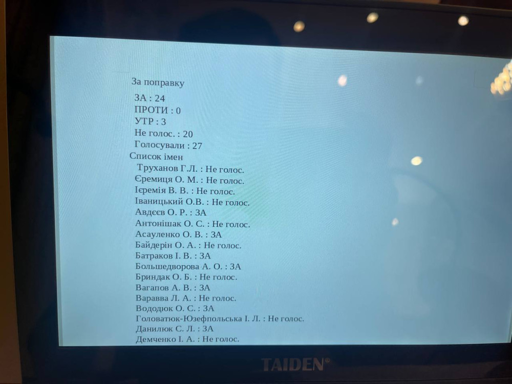За відповідні поправки до проєкту рішення, запропоновані фракцією «Європейської Солідарності», проголосували всі представники цієї політсили, а також «слуги народу» і навіть колишні ОПЗЖшники. Труханівці підтримувати ініціативу відмовилися — вони або взагалі не натиснули кнопки, або утрималися.