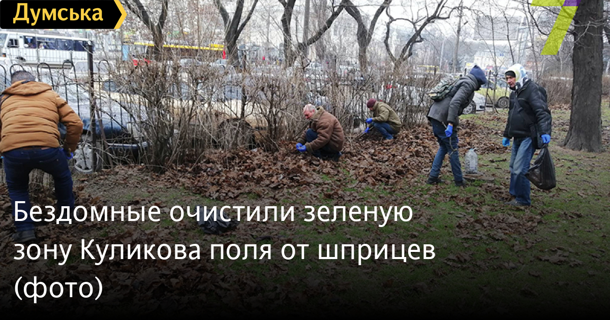 Три десятка бездомных очистили зеленую зону Куликова поля от использованных шприцев, которых там было великое множество.