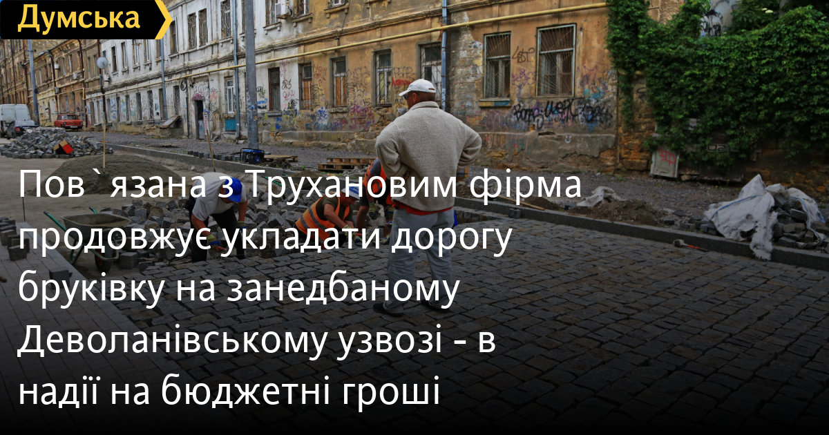 Деволанівський узвіз, більше відомий одеситам як Канава, продовжують покривати недешевою гранітною бруківкою, хоча міськрада припинила фінансування цього воістину «золотого» проєкту. Як передає кореспондент «Думської», з десяток будівельників укладають камені на бетонну основу проїжджої частини. Бруківку виклали вже приблизно на 500 метрах спуску із запланованих 760-ти. Нагадаємо, реконструкцією Деволанівського займається компанія «Ростдорстрой», яку пов'язують із мером Одеси Геннадієм Трухановим. Перший договір із нею - на 193,6 млн грн - уклали 26 серпня 2020 року. 29 вересня 2022-го його розірвали: нібито ремонт став неможливим у зв'язку з повномасштабною війною. До того моменту фірмі встигли заплатити 157,7 млн грн. Однак уже 31 жовтня 2022 року муніципалітет оголосив новий тендер щодо Деволанівського узвозу (безконкурентний). Підрядником знову став «Ростдорстрой», якому мали заплатити 61,8 млн грн. Згідно з додатковою угодою до цього договору, якою строки виконання робіт продовжили до червня 2024 року, 2022-го фірма отримала 14,5 млн грн, 2023-го — майже 10 млн. Цього року їй збиралися заплатити ще 37,6 млн грн. 2 листопада 2023 року управління капбудівництва оголосило вже третій за рахунком тендер щодо Канави. Цього разу — на «капітальний ремонт поверхневого водовідведення вздовж Деволанівського узвозу в м. Одесі з відновленням дорожнього покриття». Очікувана вартість — 45 млн грн. Брала участь у ньому тільки одна компанія — «Ростдорстрой». З нею й уклали новий договір. Він і передбачає укладання бруківки. Утім, бюджетна комісія міської ради на нещодавньому засіданні «зрізала» чергові 30 мільйонів, які мали піти «Ростдорбуду». Компанія продовжує роботи власним коштом — у надії, що колись їй усе ж таки заплатять. Тривалим і неабияк здорожчавшим ремонтом Канави давно вже цікавляться правоохоронці - відкрито два кримінальні провадження за статтями про зловживання владою або службовим становищем, а також про привласнення або розкрадання коштів. Слідство встановило, що фактично виконані роботи не відповідають тим, які зазначені в актах приймання. Депутат міськради та голова комісії з транспорту Петро Обухов вважає, що реконструкція Деволанівського узвозу під час повномасштабної війни недоцільна: «Введення в експлуатацію Деволанівського узвозу жодним чином не поліпшить транспортну ситуацію в місті. Ніхто не їздитиме ним замість Польської вулиці — це дуже незручно, узвіз з одного боку впирається в Єврейську, а з іншого — в Митну площу. Має сенс спочатку відновити напівзруйновані будівлі, які там знаходяться, а потім уже продовжувати реконструкцію дороги з укладанням бруківки та встановленням ліхтарів, які вже частково пошкоджені», — зазначив депутат. За його словами, наразі Канава поступово перетворюється на велику стоянку автомобілів — на реконструйованій ділянці дороги з боку Єврейської вже припарковано кілька десятків машин. СМЕРТЬ РОСІЙСЬКИМ ОКУПАНТАМ! Помітили помилку? Виділяйте слова з помилкою та натискайте control-enter