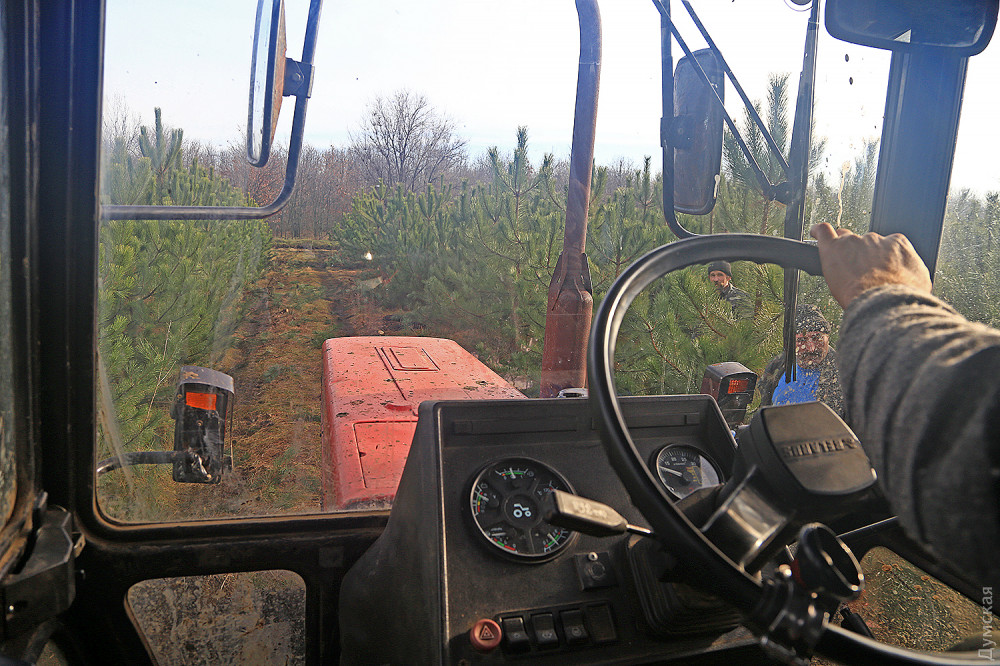 Зарплаты в лесничестве небольшие. Не каждый пойдет вкалывать за 3 тысячи гривен в месяц, поэтому здесь много сезонных рабочих. Водитель уже известного нам «Белоруса», тракторист Олег, с весны до осени трудится на таком же транспорте у фермеров, на пшеничных полях. Говорит, что не может сидеть дома даже зимой: длительный отдых — не для него. Поэтому решил подрабатывать в лесничестве. В кузов трактора вмещается от 80 до 100 деревьев, но бывают клиенты, которым надо всего 25 стволов, и поэтому иногда приходится ехать почти порожняком. В среднем за световой день он делает 5-6 ходок.