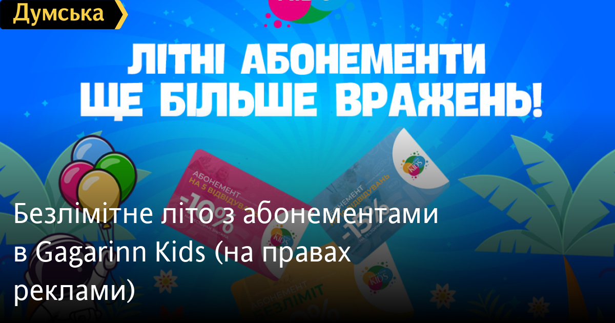 Безлімітне літо з абонементами в Gagarinn Кids (на правах реклами)