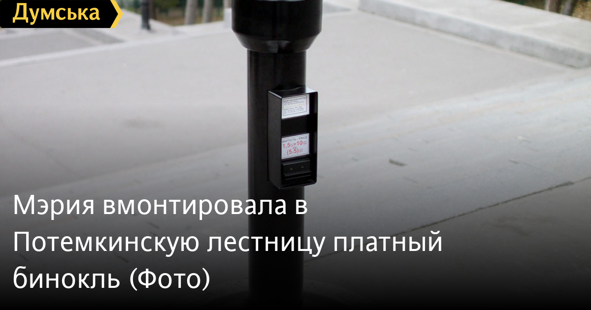 Бинокль дальнего обозрения установлен на первом сверху пролете Потемкинской лестницы. Прибор позволяет рассмотреть морской вокзал и Одесский порт издалека в мельчайших подробностях. Впрочем, не бесплатно — табличка на бинокле гласит, что стоимость 1,5 минут «разглядывания» порта обойдется желающим в 10 грн.
