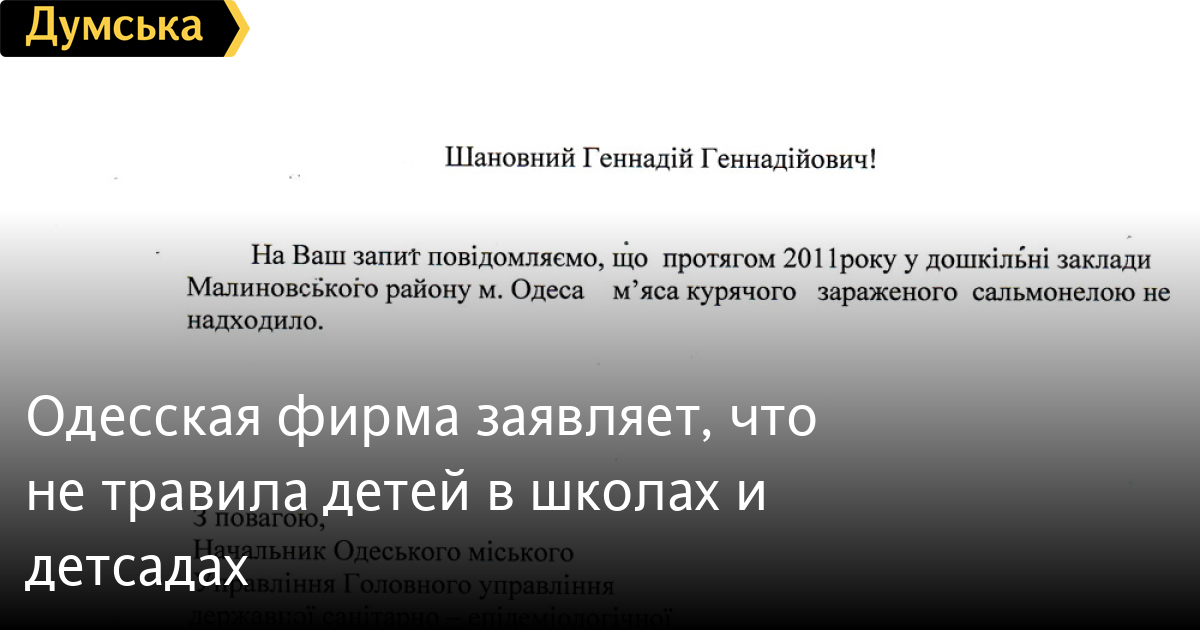 По данным ООО, подтвержденным официальными ответами контролирующих органов, в частности городской СЭС, в 2011-м году в детских садах Одессы не было зафиксировано ни одного случая заболевания сальмонеллезом в результате потребления куриного мяса.