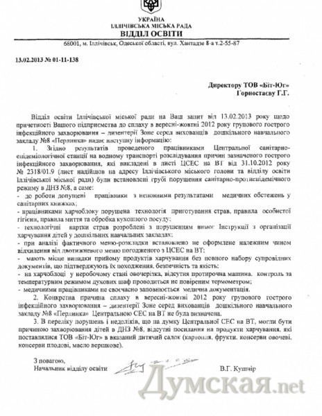 Что касается вспышки дизентерии в детском саду №8 «Жемчужинка» города Ильичевск, то ООО «Бит-Юг» не поставляет в дошкольные учреждения продукты питания, из-за которых случилось ЧП.