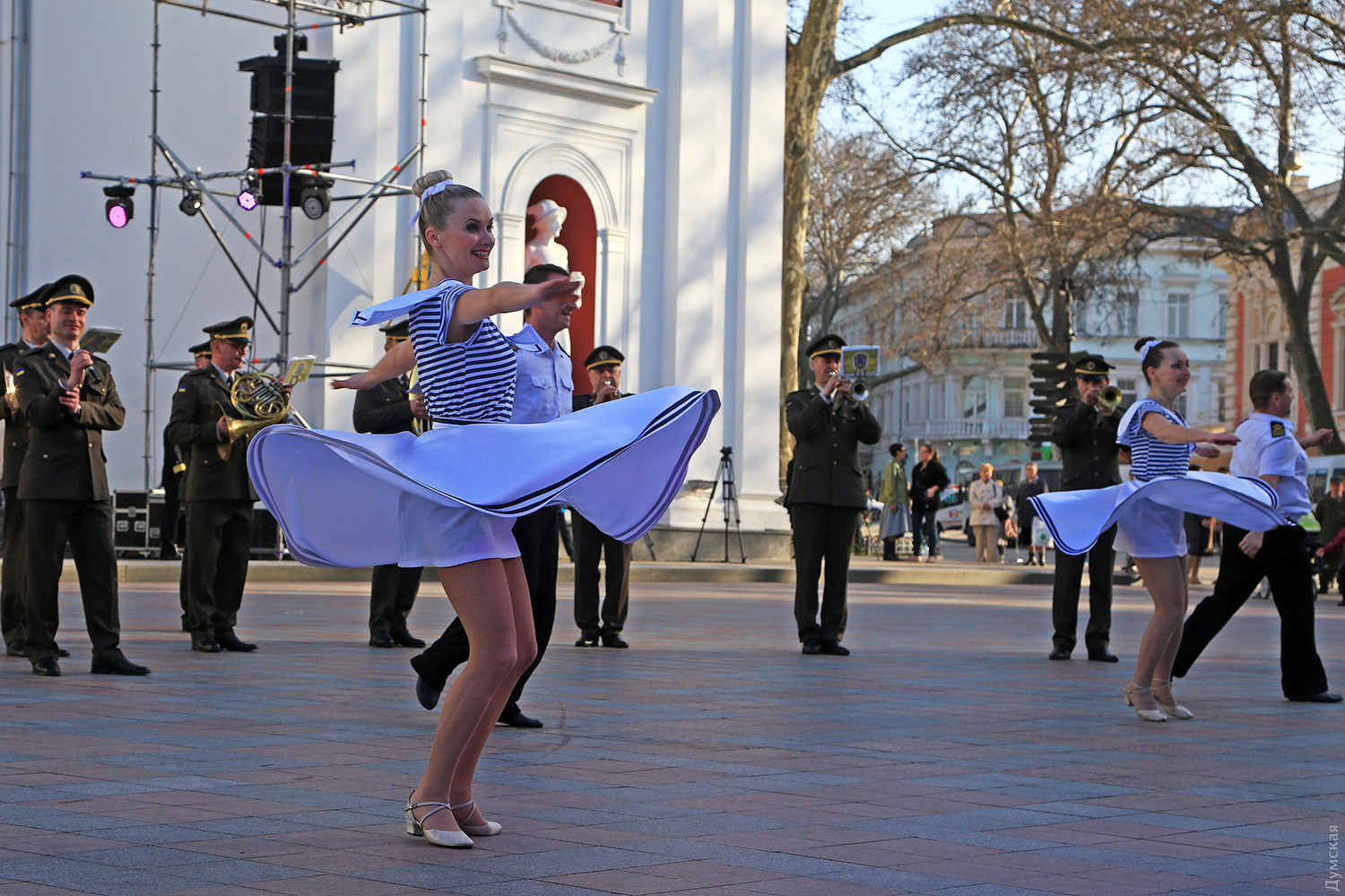 Ставший уже традиционным фестиваль духовых оркестров прошел вчера вечером, в День освобождения Одессы, на Думской площади. В прежние годы к нам приезжали и яркие зарубежные коллективы, но на этот раз, увы, в мастерстве состязались только одесские музыканты. Горожане смогли увидеть оркестры Военной академии, Одесского муниципального театра духовой музыки имени Салика, Главного управления Национальной полиции, ВМСУ и 49-го полка Нацгвардии. Перед началом программы случилась пятиминутная заминка. «Битву оркестров» и всех собравшихся должен был вдохновить мэр Одессы, который немного задержался, принимая ветеранов. Но через несколько минут он все же вышел и еще раз поздравил всех с праздником. Чисто музыкальные композиции сменяли вокалисты, поющие под оркестровый аккомпанемент, и танцевальные коллективы. Концерт был ярким и даже веселым, музыканты в честь праздника зажигали и заводили публику от души. Особо отличился дирижер оркестра Нацгвардии майор Федорчук. Его мимика и энергичные жесты буквально покорили публику. Музыкантов провожали аплодисментами. Фото — Сергей Смоленцев Видео — ГУНП и пресс-службы мэрии СМЕРТЬ РОСІЙСЬКИМ ОКУПАНТАМ! Помітили помилку? Виділяйте слова з помилкою та натискайте control-enter |