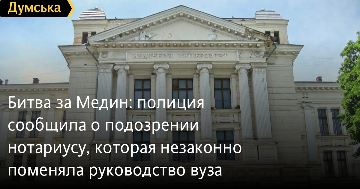 Подозрение в несанкционированных действиях с информацией вручили нотариусу Одесского городского нотариального округа из-за смены руководства Одесского национального медицинского университета, передает корреспондент «Думской».