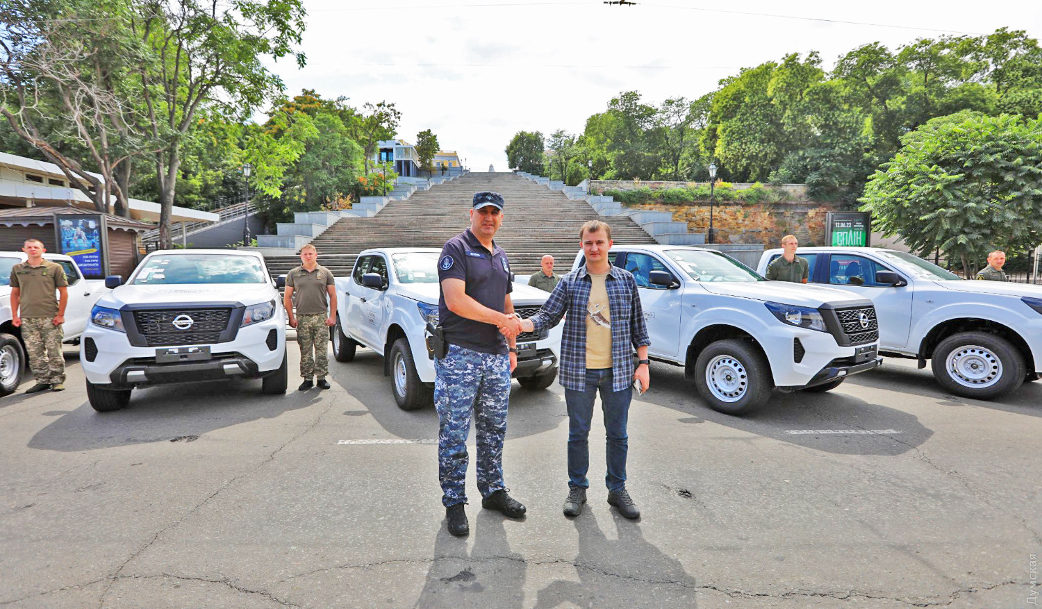 П'ять автомобілів Nissan Navara передав сьогодні в Одесі для потреб ВМС України фонд «Повернись живим«.