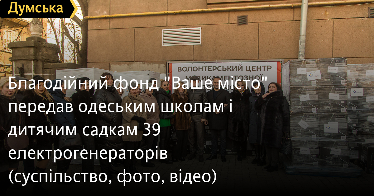 39 електрогенераторів передав Міжнародний благодійний фонд «Ваше місто» на честь Дня святого Миколая одеським дитсадкам і школам, які працюватимуть очно. «Ми продовжуємо допомагати нашому улюбленому місту. У День святого Миколая, завдяки нашим партнерам німецько-українській благодійній організації Blau-Gelbes Kreuz, а також фінансовій підтримці німецьких меценатів, ми передали одеській мерії 39 електрогенераторів, потужністю 3 кВт кожен. Вони будуть спрямовані в дитячі садки та школи Одеси. А отже, наші діти під час повітряної тривоги і за відсутності електроенергії в укриттях будуть у безпеці, зі світлом і теплом», — розповів засновник фонду Ігор Федін. За словами міського голови Геннадія Труханова, через департамент освіти і науки генератори передадуть керівникам навчальних закладів. «Ці генератори забезпечуватимуть освітлення сховищ і переходів до них під час повітряних тривог. Самі сховища в закладах відремонтовані та забезпечені всім необхідним. Але до сьогоднішнього дня вони освітлювалися лише за допомогою ліхтарів. Ми всі розуміємо, що таке перебування ста, двохсот чи навіть трьохсот дітей у підвальному приміщенні без світла. Тому ця гуманітарна місія дуже важлива», — зазначив Геннадій Труханов. Мер також подякував фонду «Ваше місто» та його донорам із Німеччини, США та України за генератори і за надані медикаменти. Нагадаємо, в середині літа фонд «Ваше місто» уклав довгостроковий договір з Action Medeor — провідною німецькою компанією, яка з 1964 року надає медикаментозну гуманітарну допомогу населенню країн, що потерпають від природних катаклізмів, епідемій і військових конфліктів. У грудні Міжнародний благодійний фонд «Ваше місто» і Департамент соціальної політики та праці Одеської міської ради підписали меморандум про співпрацю. Два Волонтерські Центри Медикаментозної Допомоги продовжують працювати для збереження здоров'я і життя цивільного населення Одеси. СМЕРТЬ РОСІЙСЬКИМ ОКУПАНТАМ! Помітили помилку? Виділяйте слова з помилкою та натискайте control-enter Новини по цій темі: 19 лютого 2025: Наслідки обстрілу: чотири людини постраждали, чверть Одеси без світла та тепла, із системи зливають воду (відео) 18 лютого 2025: Одесу атакують ворожі дрони: у деяких районах зникло світло, над містом стоїть стовп диму (фото, відео, оновлюється) 19 листопада 2024: В Одесі та області продовжують діяти екстрені відключення світла |