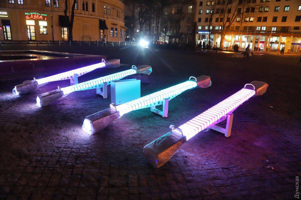 Светящиеся Led-качели установили сегодня на Греческой площади Одессы.