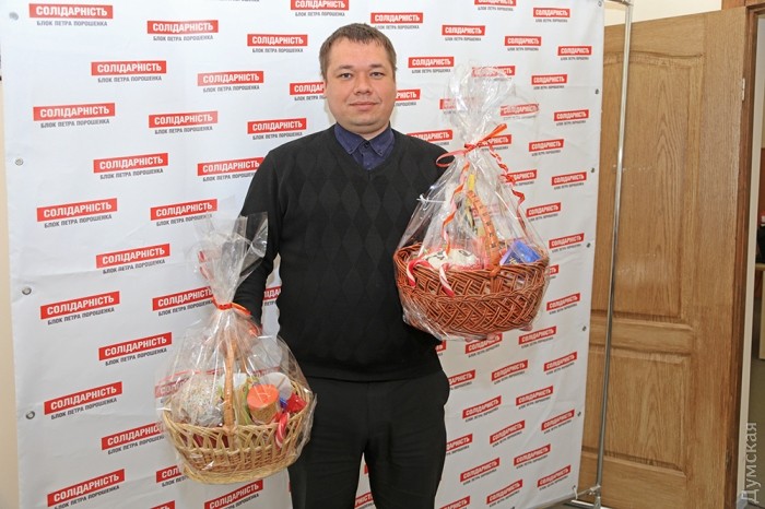 «Мы постарались положить в каждую корзинку все, что является символом Пасхи — это и шоколад, и конфеты, и сладкие яйца, и печенье, и конечно куличи. Дети есть дети, они должны почувствовать, что это большой праздник и им должно быть приятно», — говорит глава Беляевской районной организации партии «Солидарность» Блок Петра Порошенко Олег Мишагли.